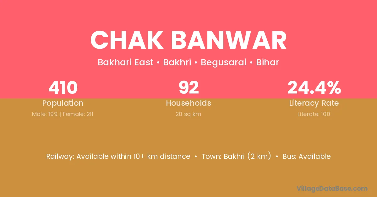 Chak Banwar village has a total population of 410 people, of which 199 are males and 211 are females.