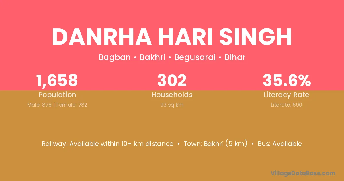 Bakhri (5 km) is the nearest town to Danrha Hari Singh village for major economic activities and is located approximately 5 km away.