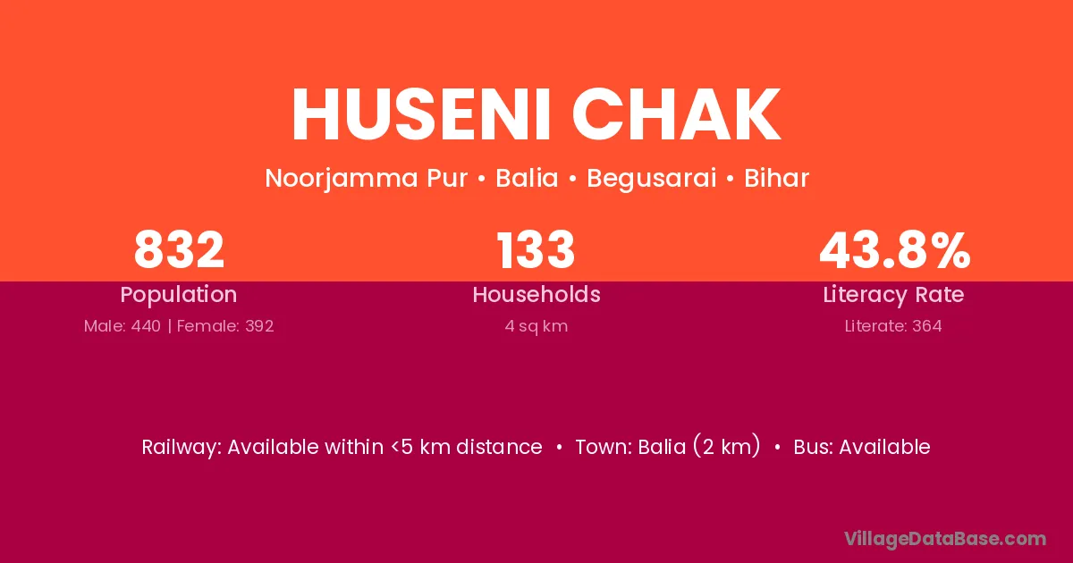 Balia (2 km) is the nearest town to Huseni Chak village for major economic activities and is located approximately 2 km away.