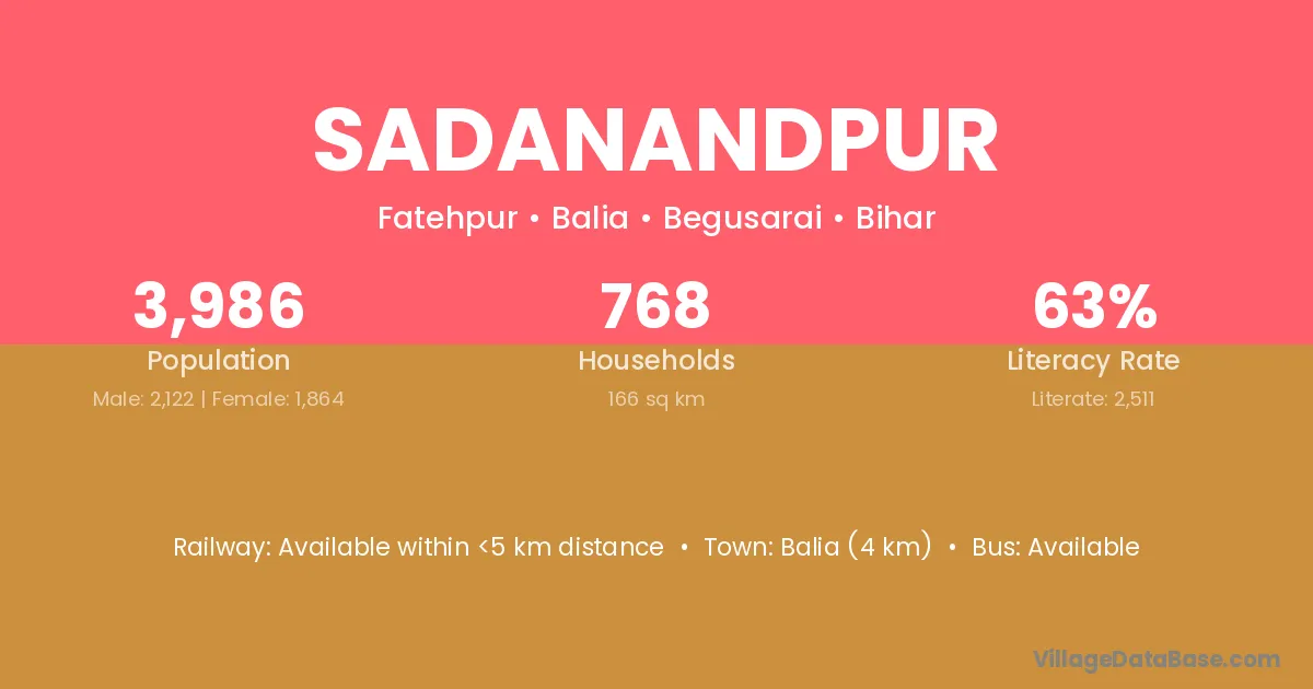 Balia (4 km) is the nearest town to Sadanandpur village for major economic activities and is located approximately 4 km away.