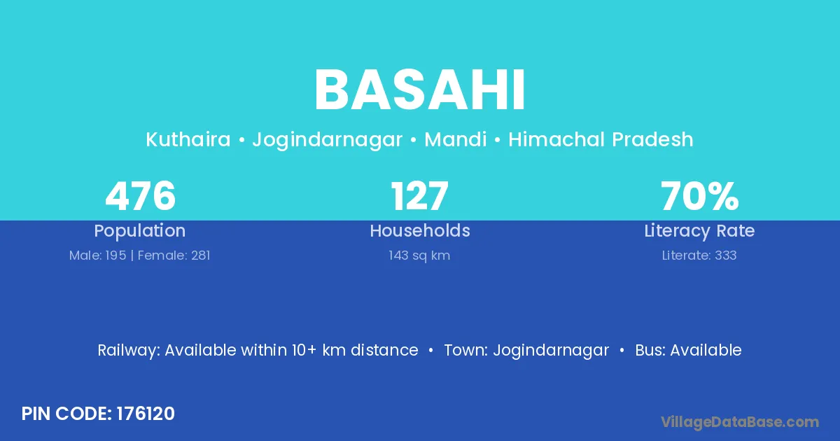 The literacy rate of Basahi village is 59.47%. Male literacy stands at 66.19% and female literacy at 51.31%.