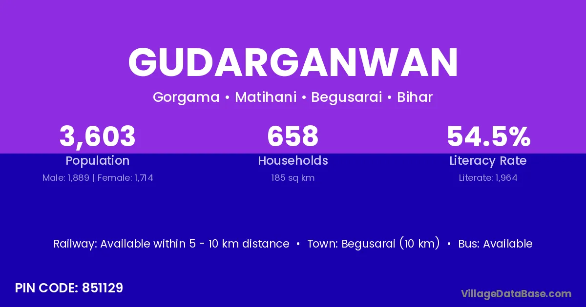 Begusarai (10 km) is the nearest town to Gudarganwan village for major economic activities and is located approximately 10 km away.