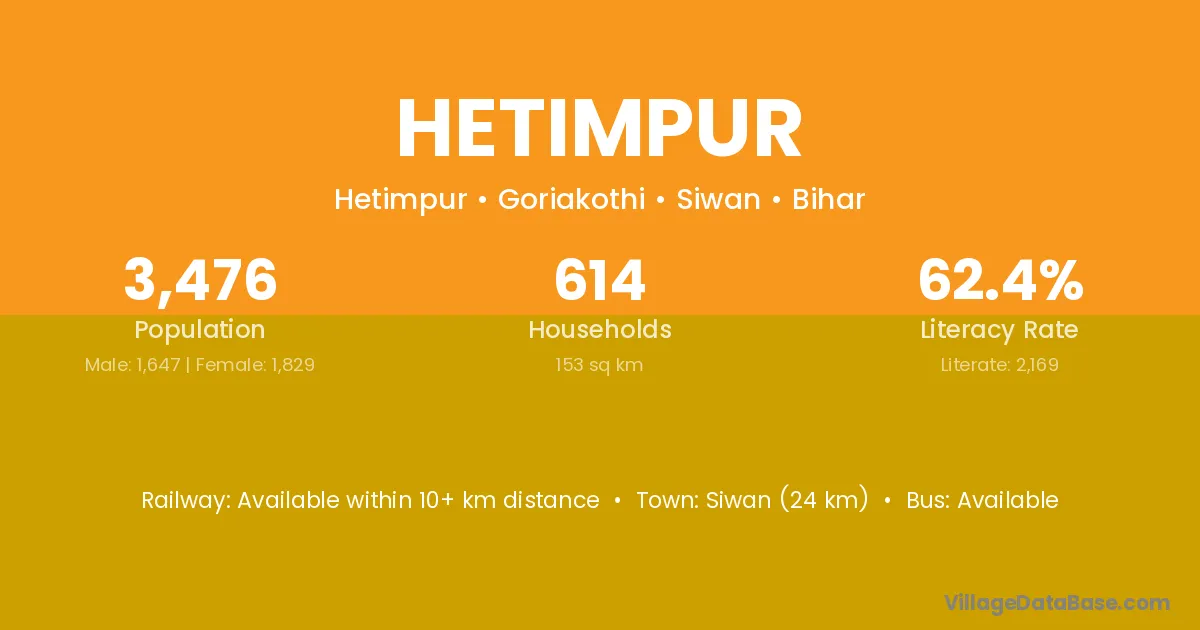 Begusaria (16 km) is the nearest town to Hetimpur village for major economic activities and is located approximately 16 km away.