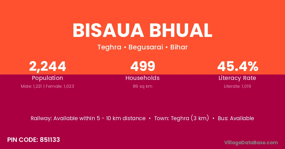 Teghra (3 km) is the nearest town to Bisaua Bhual village for major economic activities and is located approximately 3 km away.