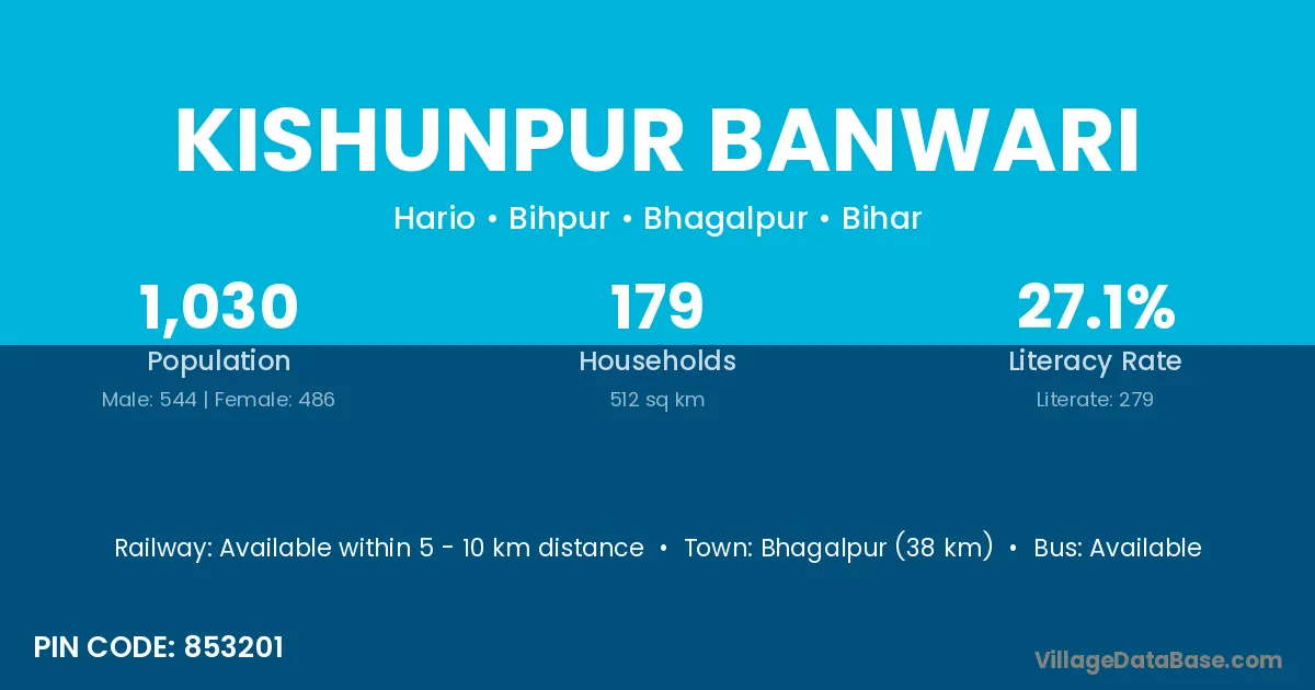 Bhagalpur (38 km) is the nearest town to Kishunpur Banwari village for major economic activities and is located approximately 38 km away.