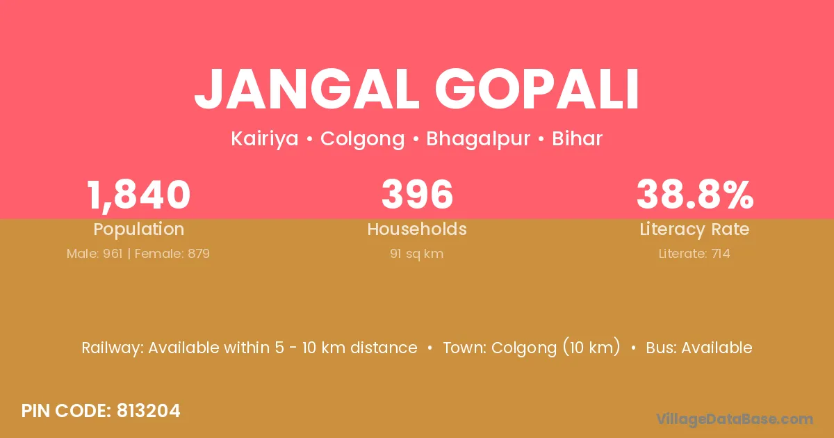 Colgong (10 km) is the nearest town to Jangal Gopali village for major economic activities and is located approximately 10 km away.