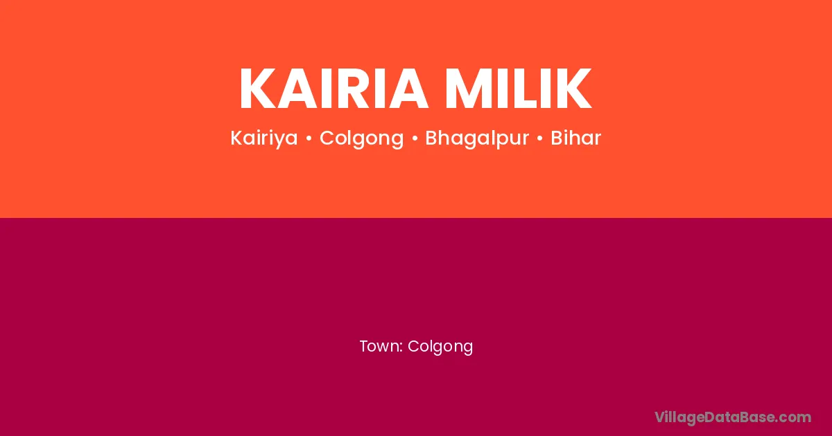Kairia Milik village is located in the Colgong Subdivision of the Bhagalpur district in Bihar .