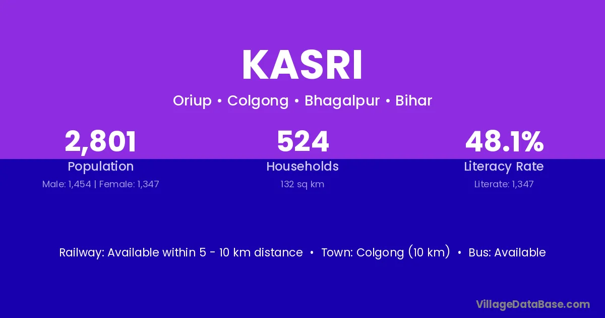 Colgong (10 km) is the nearest town to Kasri village for major economic activities and is located approximately 10 km away.