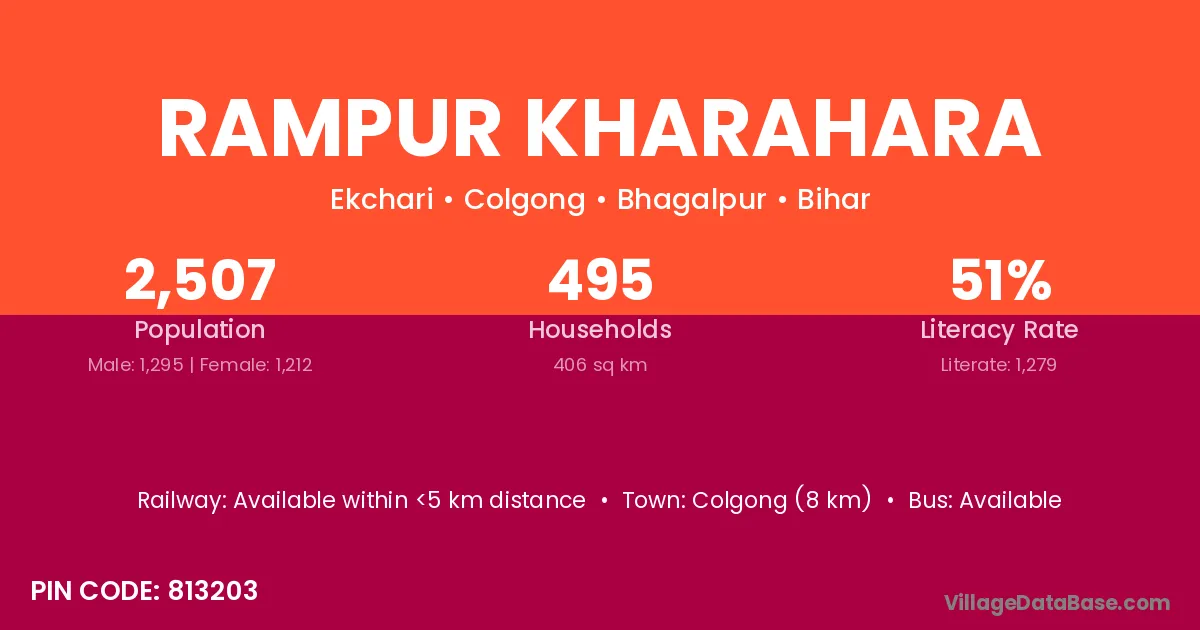 Colgong (8 km) is the nearest town to Rampur Kharahara village for major economic activities and is located approximately 8 km away.