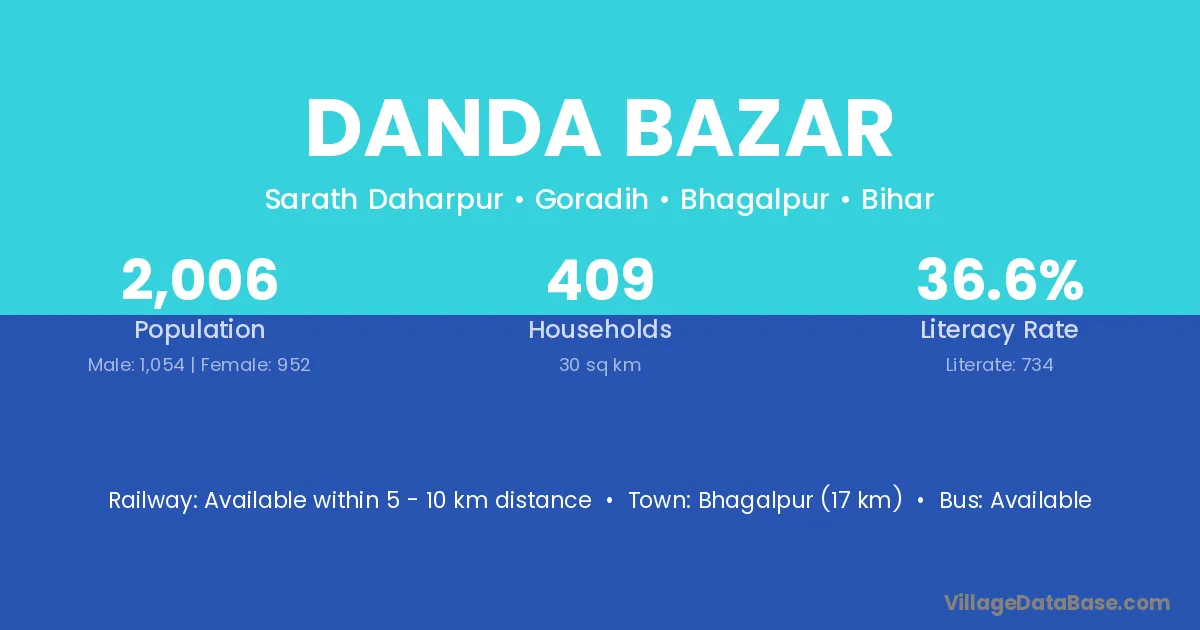 Bhagalpur (17 km) is the nearest town to Danda Bazar village for major economic activities and is located approximately 17 km away.