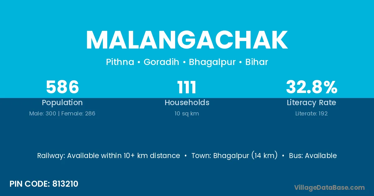 Bhagalpur (14 km) is the nearest town to Malangachak village for major economic activities and is located approximately 14 km away.