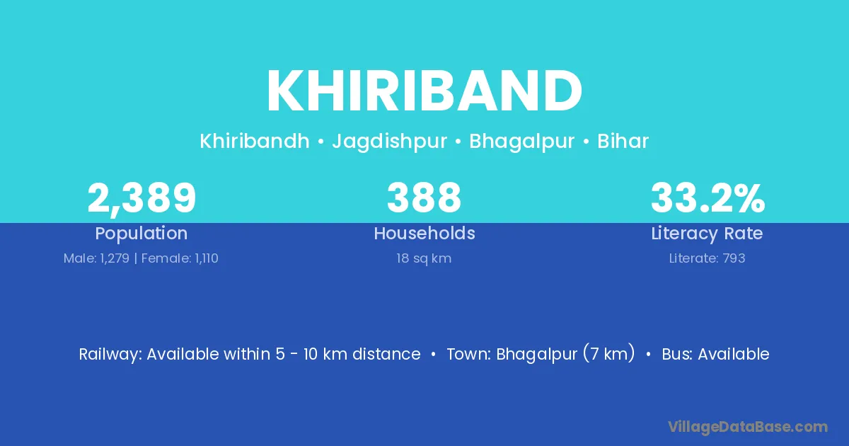 Bhagalpur (7 km) is the nearest town to Khiriband village for major economic activities and is located approximately 7 km away.