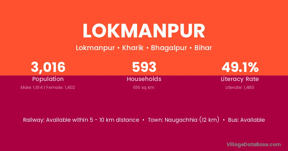 Naugachhia (12 km) is the nearest town to Lokmanpur village for major economic activities and is located approximately 12 km away.