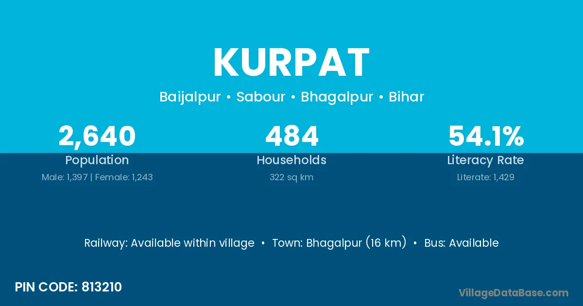 Bhagalpur (16 km) is the nearest town to Kurpat village for major economic activities and is located approximately 16 km away.