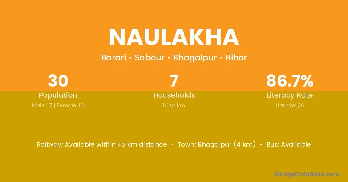 Bhagalpur (4 km) is the nearest town to Naulakha village for major economic activities and is located approximately 4 km away.