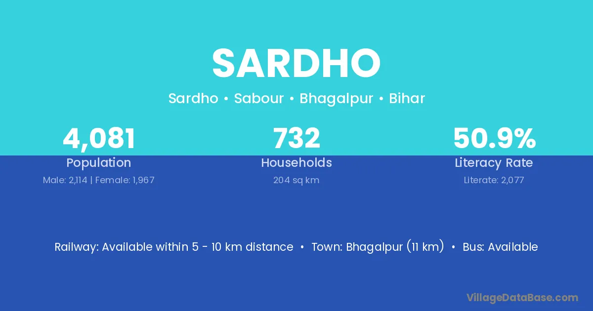 Bhagalpur (11 km) is the nearest town to Sardho village for major economic activities and is located approximately 11 km away.