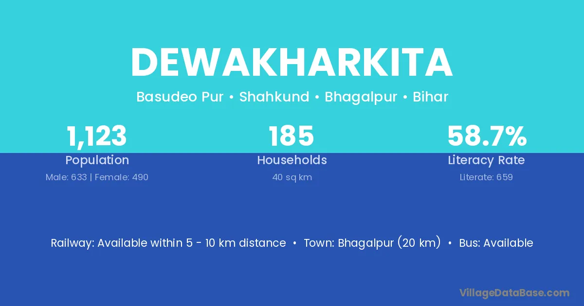 Bhagalpur (20 km) is the nearest town to Dewakharkita village for major economic activities and is located approximately 20 km away.