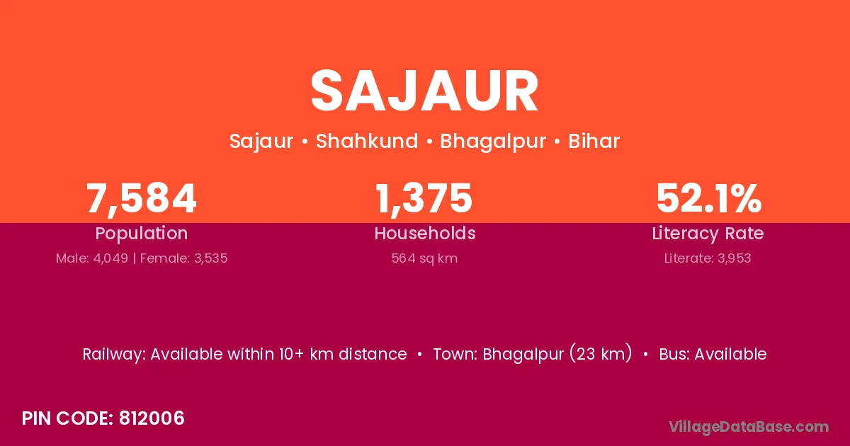Bhagalpur (23 km) is the nearest town to Sajaur village for major economic activities and is located approximately 23 km away.