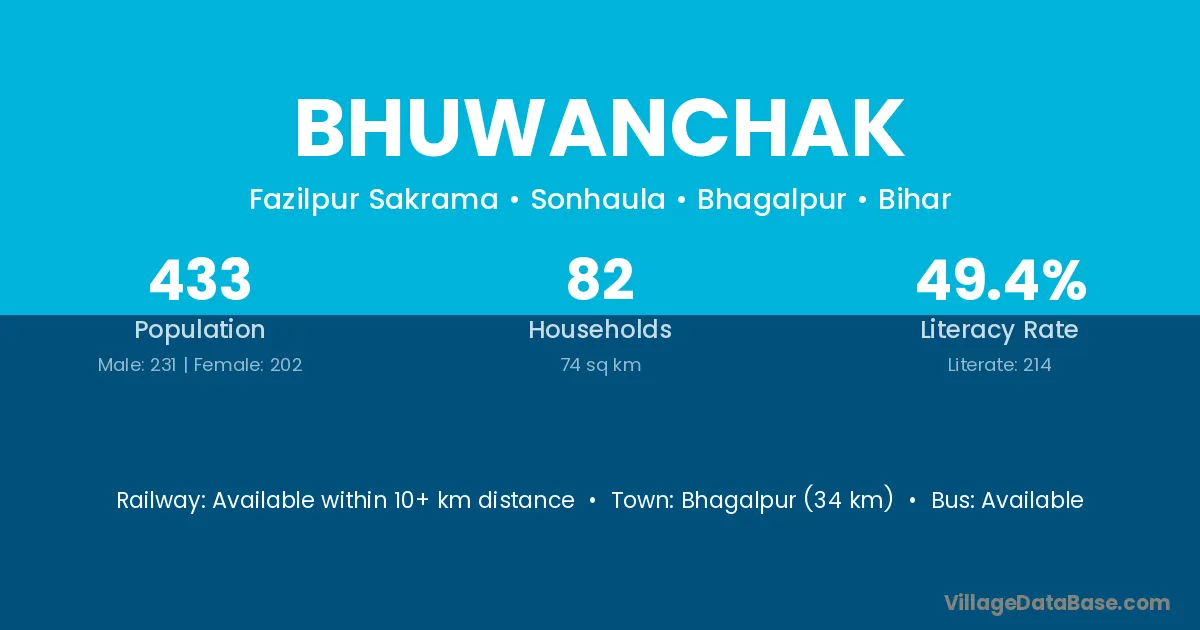Bhagalpur (34 km) is the nearest town to Bhuwanchak village for major economic activities and is located approximately 34 km away.