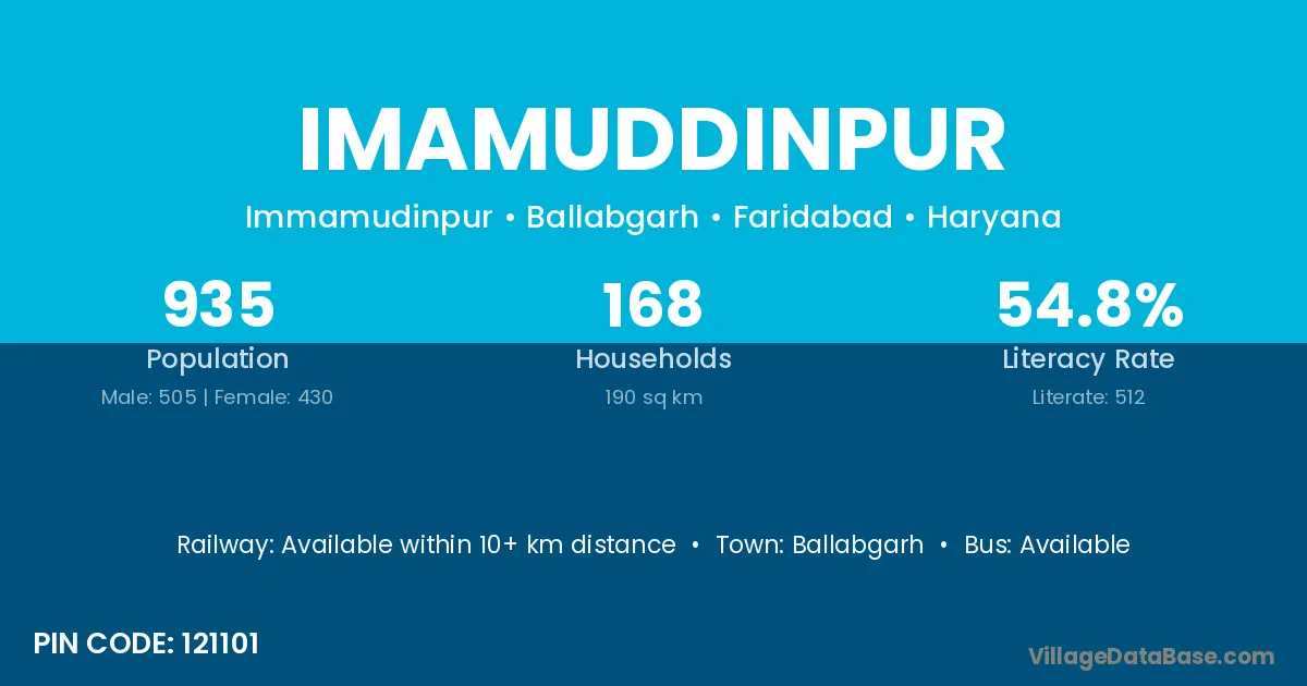 Imamuddinpur village has a total population of 1,334 people, of which 698 are males and 636 are females.