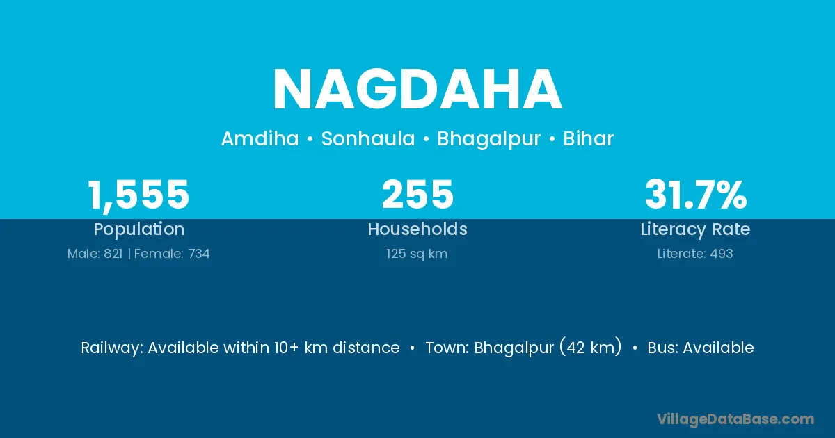 Bhagalpur (42 km) is the nearest town to Nagdaha village for major economic activities and is located approximately 42 km away.