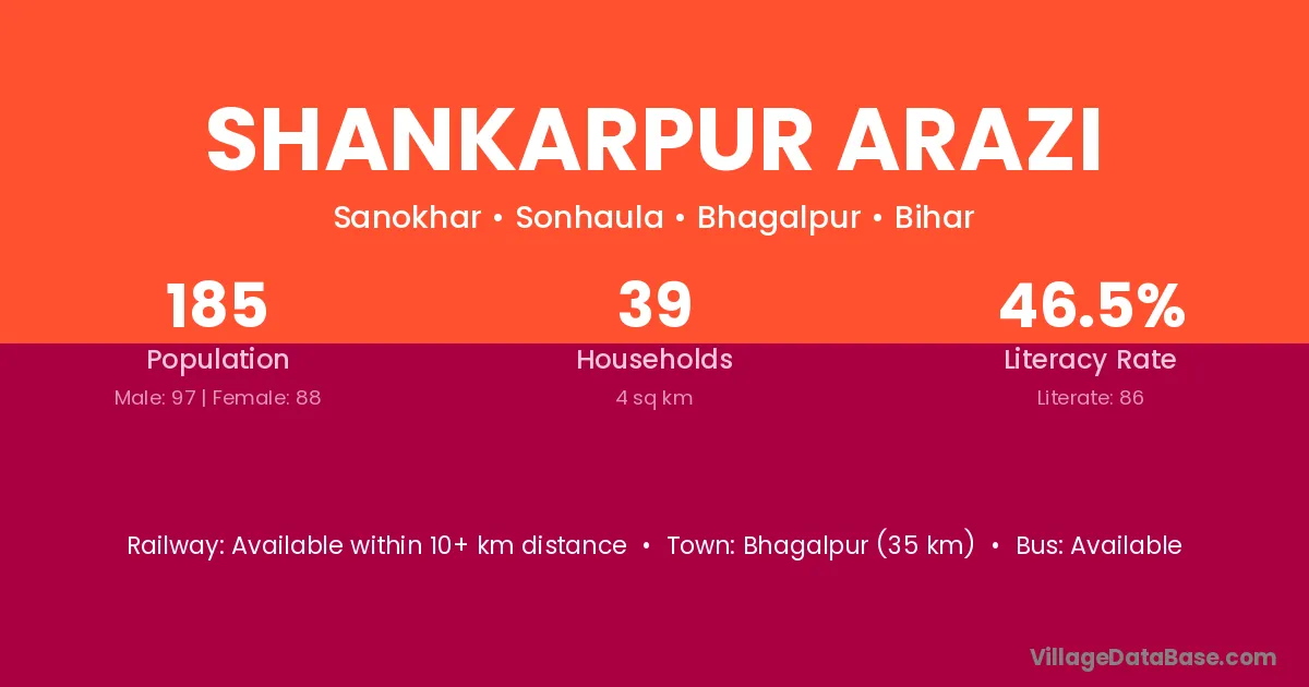 Bhagalpur (35 km) is the nearest town to Shankarpur Arazi village for major economic activities and is located approximately 35 km away.