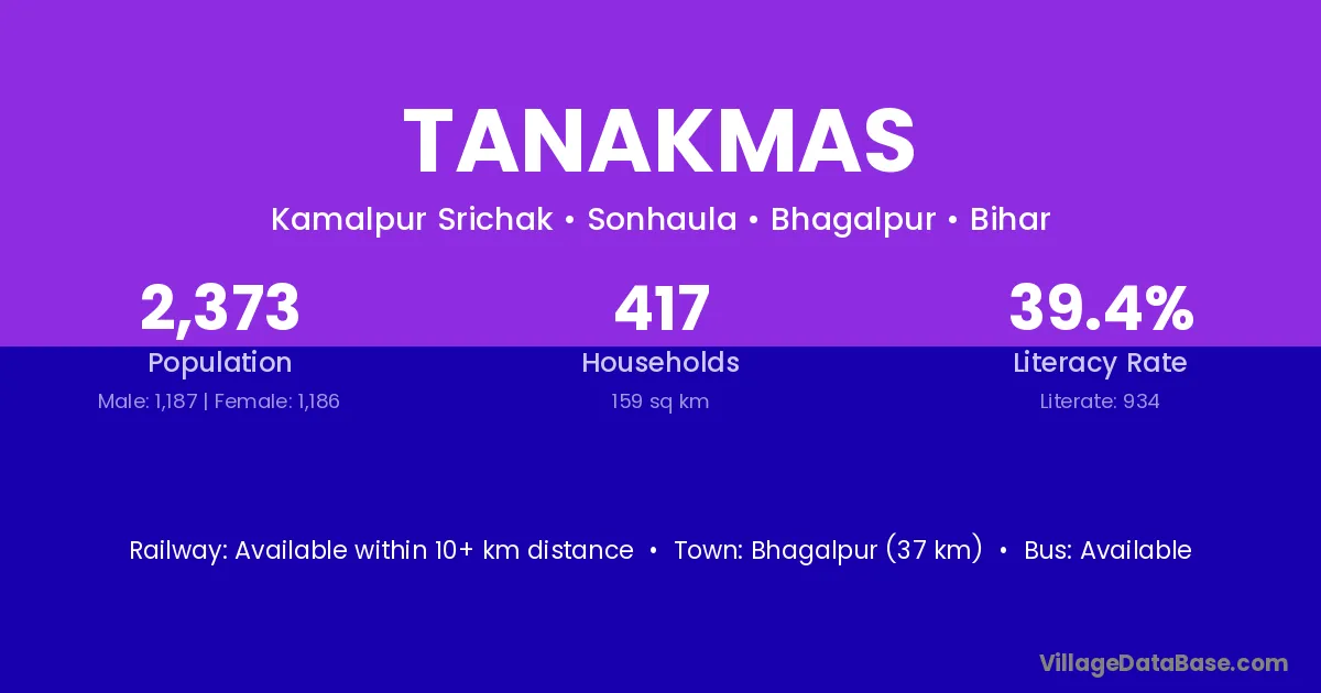 Bhagalpur (37 km) is the nearest town to Tanakmas village for major economic activities and is located approximately 37 km away.