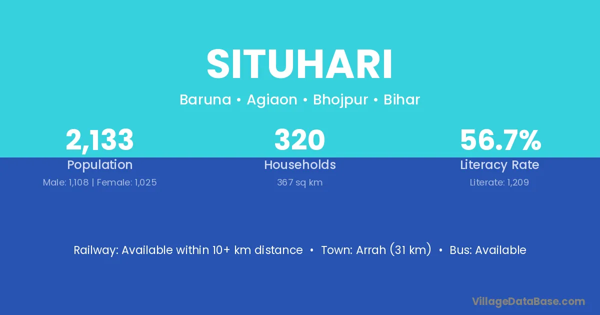 Arrah (31 km) is the nearest town to Situhari village for major economic activities and is located approximately 31 km away.