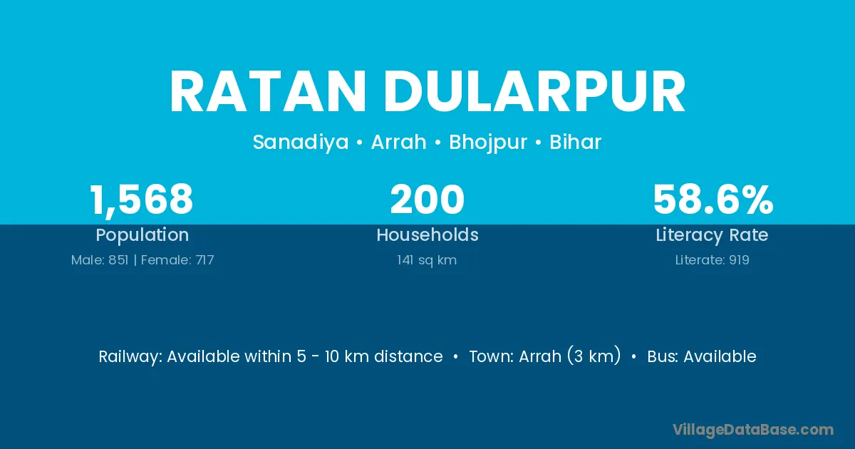 Arrah (3 km) is the nearest town to Ratan Dularpur village for major economic activities and is located approximately 3 km away.