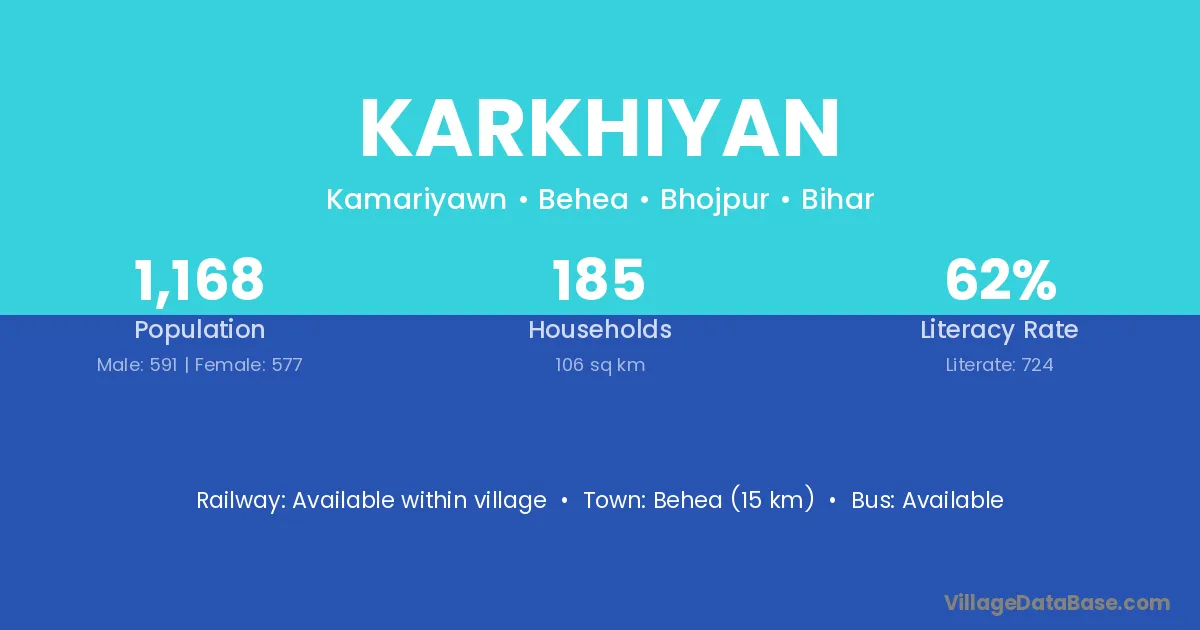 Behea (15 km) is the nearest town to Karkhiyan village for major economic activities and is located approximately 15 km away.