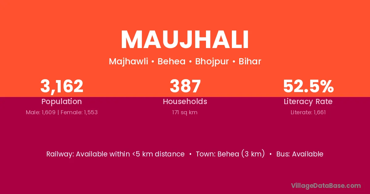 Behea (3 km) is the nearest town to Maujhali village for major economic activities and is located approximately 3 km away.