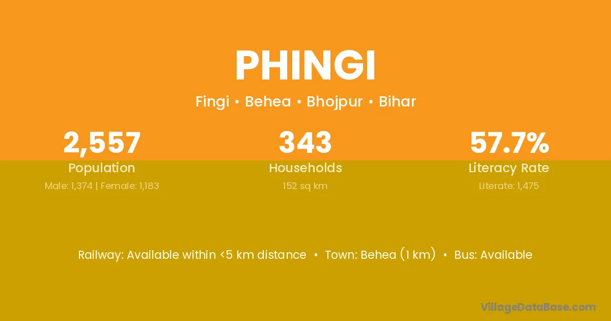 Behea (1 km) is the nearest town to Phingi village for major economic activities and is located approximately 1 km away.