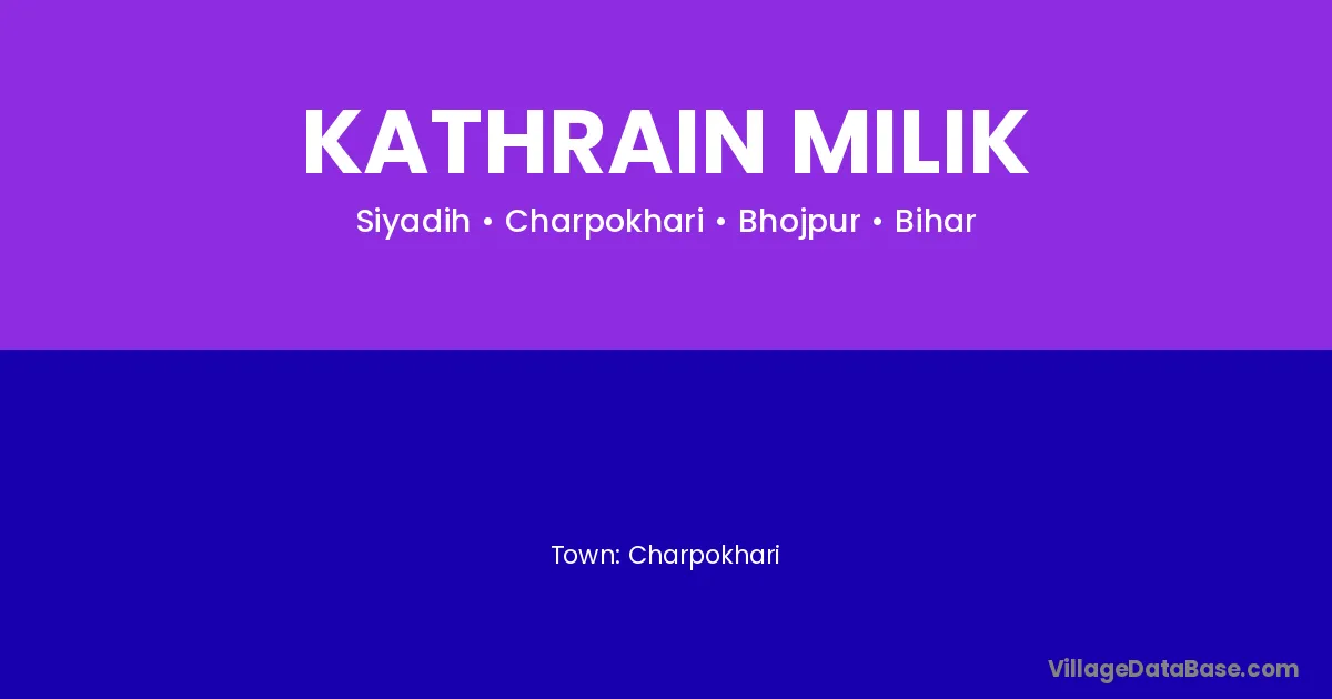 Charpokhari is the nearest town to Kathrain Milik village for major economic activities