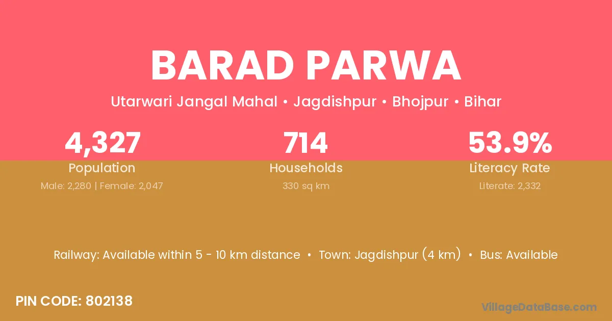 Jagdishpur (4 km) is the nearest town to Barad Parwa village for major economic activities and is located approximately 4 km away.