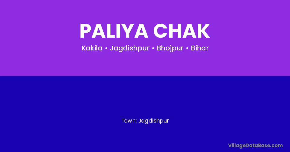 Paliya Chak village is located in the Jagdishpur Subdivision of the Bhojpur district in Bihar .