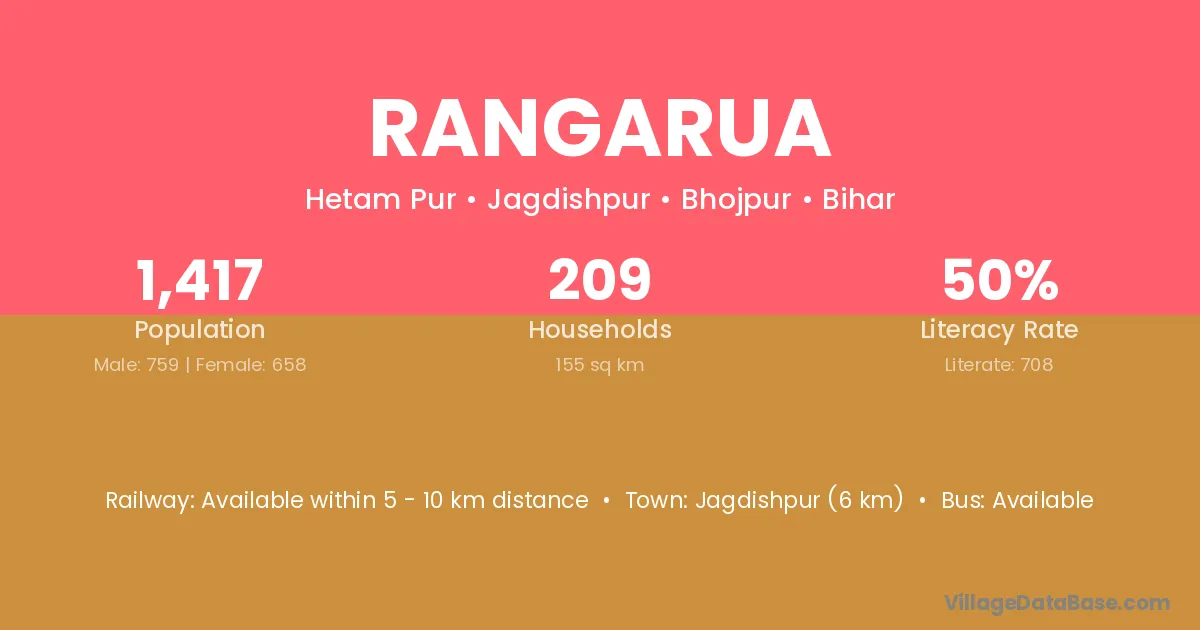 Rangarua village has a total population of 1,417 people, of which 759 are males and 658 are females.