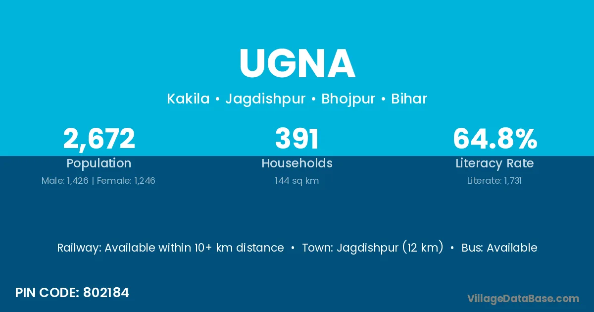 Jagdishpur (12 km) is the nearest town to Ugna village for major economic activities and is located approximately 12 km away.