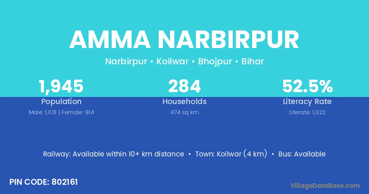 Koilwar (4 km) is the nearest town to Amma Narbirpur village for major economic activities and is located approximately 4 km away.