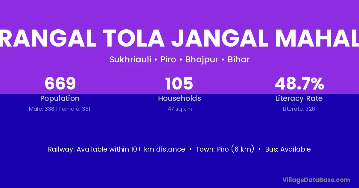 Piro (6 km) is the nearest town to Rangal Tola Jangal Mahal village for major economic activities and is located approximately 6 km away.