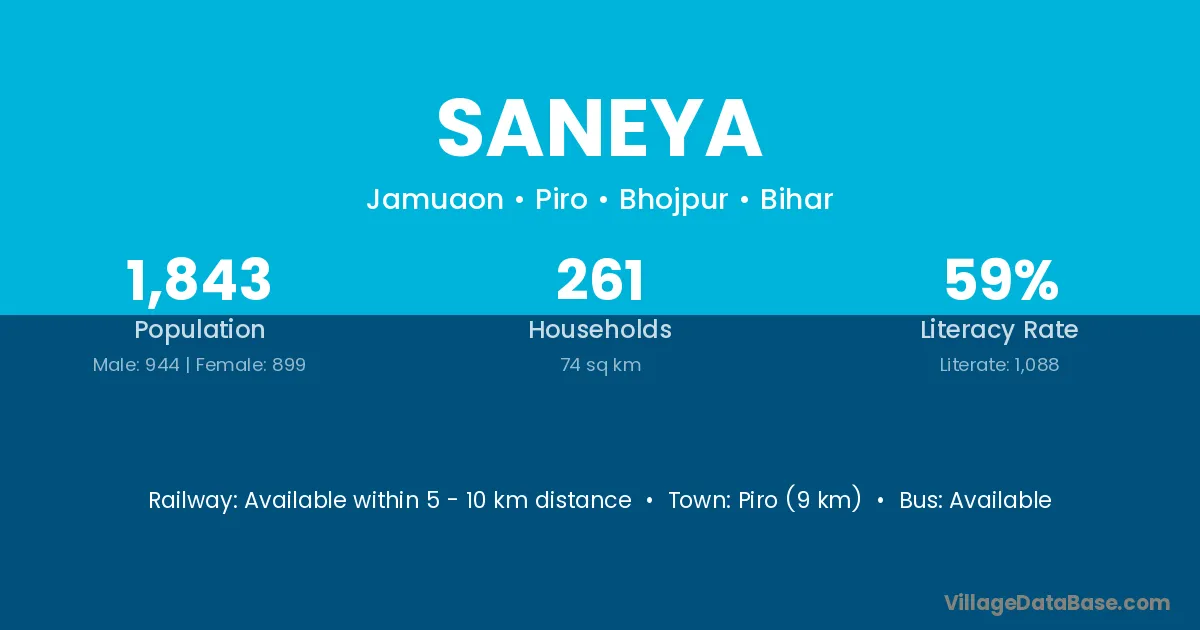 Saneya village is located in the Piro Subdivision of the Bhojpur district in Bihar .