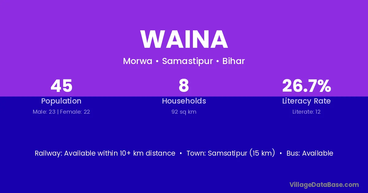 Waina village has a total population of 1,585 people, of which 713 are males and 872 are females.