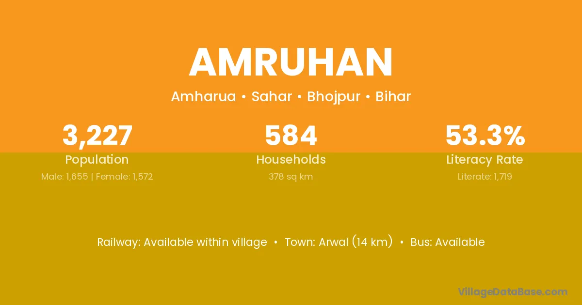 Amruhan village has a total population of 3,227 people, of which 1,655 are males and 1,572 are females.