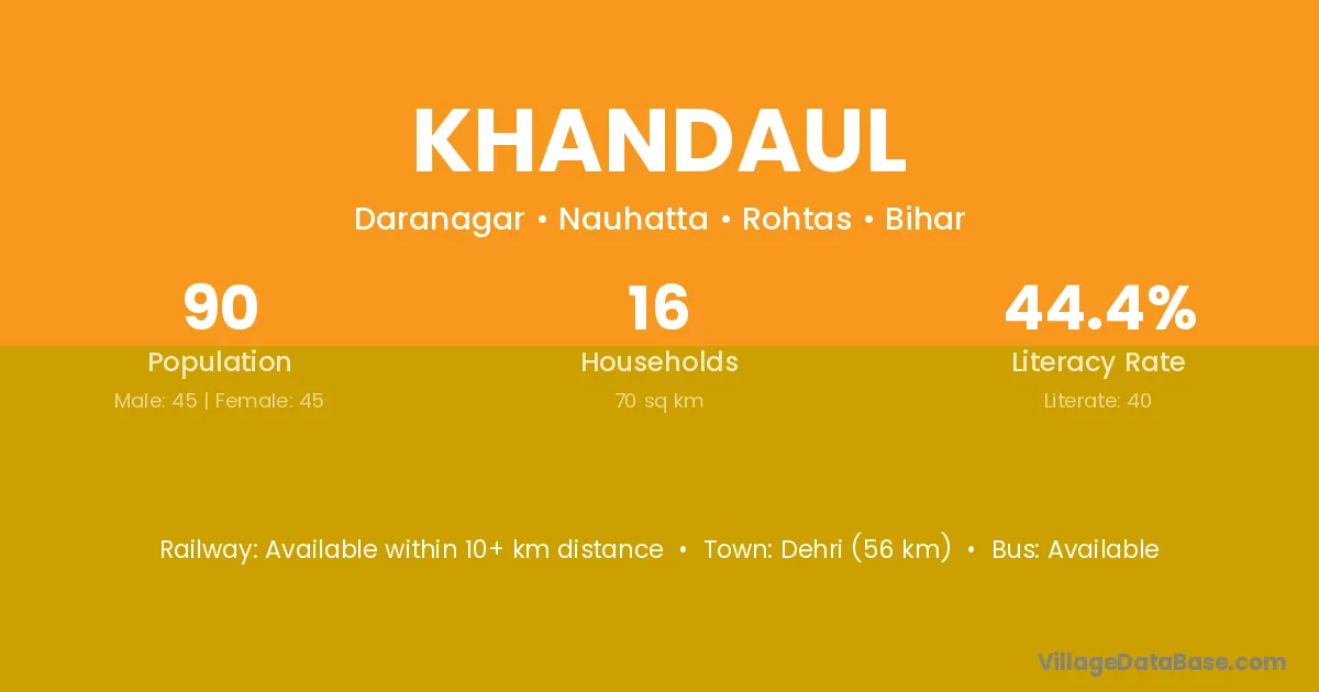 Arrah (30 km) is the nearest town to Khandaul village for major economic activities and is located approximately 30 km away.