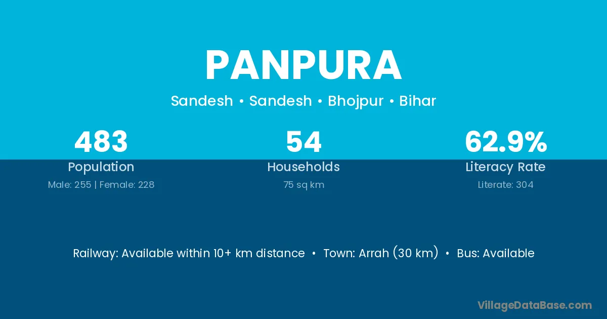 Arrah (30 km) is the nearest town to Panpura village for major economic activities and is located approximately 30 km away.