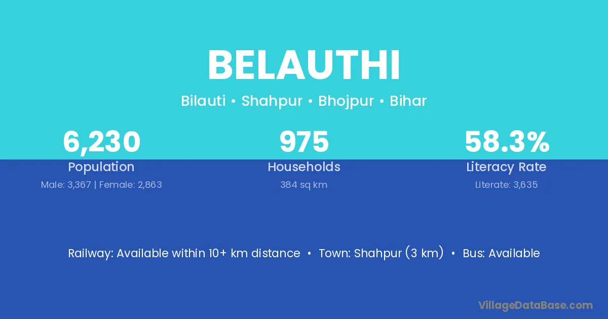 Shahpur (3 km) is the nearest town to Belauthi village for major economic activities and is located approximately 3 km away.