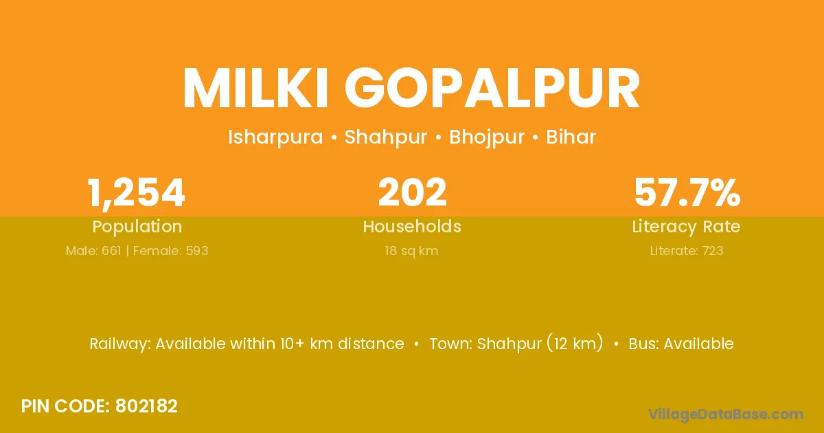 There are approximately 202 households in Milki Gopalpur village.