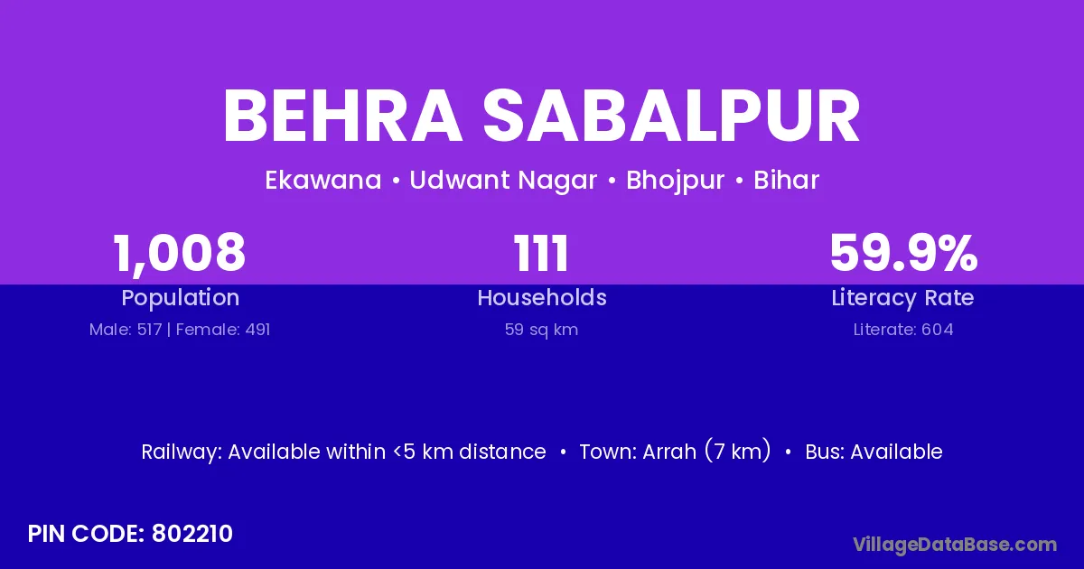Arrah (7 km) is the nearest town to Behra Sabalpur village for major economic activities and is located approximately 7 km away.