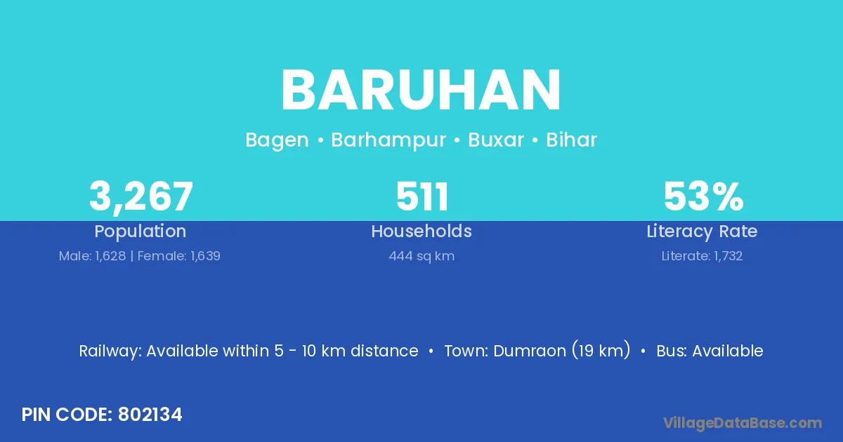 Dumraon (19 km) is the nearest town to Baruhan village for major economic activities and is located approximately 19 km away.