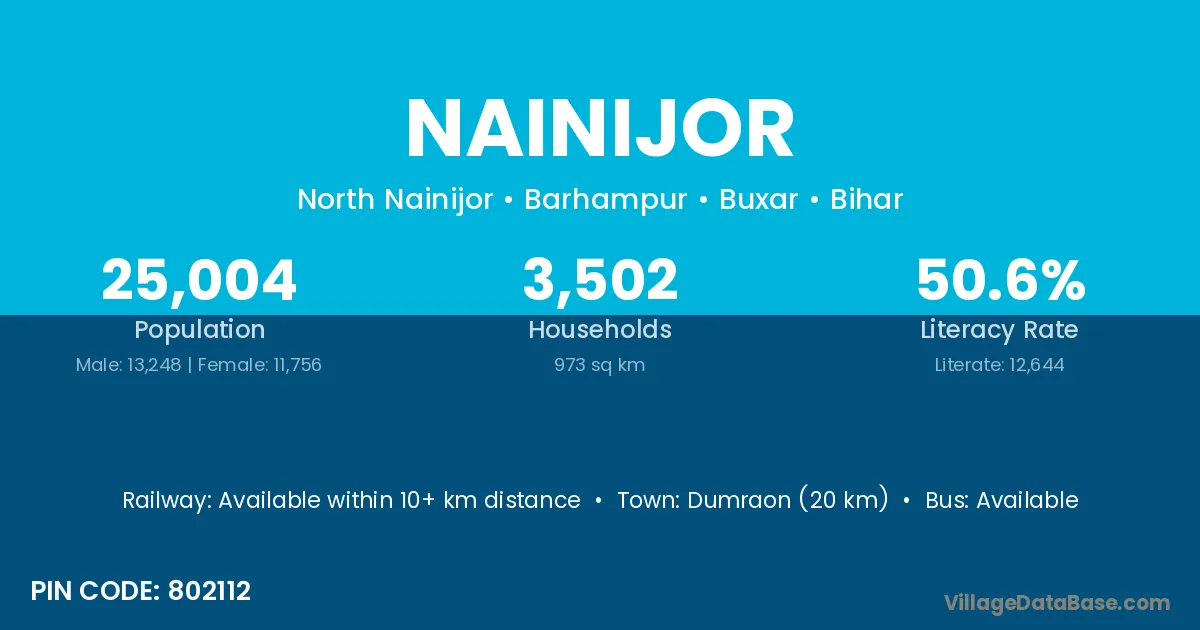 Dumraon (20 km) is the nearest town to Nainijor village for major economic activities and is located approximately 20 km away.