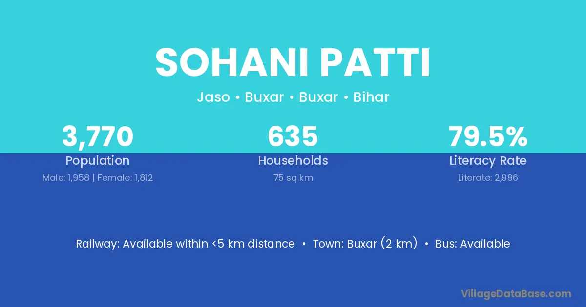 Buxar (2 km) is the nearest town to Sohani Patti village for major economic activities and is located approximately 2 km away.